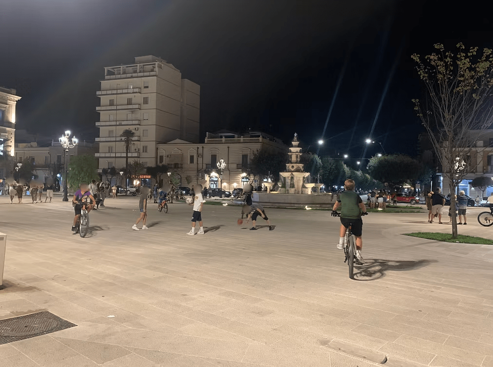 Questa analisi mi ha aiutata a normalizzare le lamentele e i comportamenti dei vari sanseveresi. Mi sta bene che venga vandalizzata? Certo che no. Ma, così come il processo culturale esiste tramite le azioni di chi non la rispetta, esso emerge anche attraverso le vite di chi la vive come bene comune. L’uomo seduto sul bordo della fontana che dice ai bambini: «Non si cammina sull’erba». Un gesto semplice, eppure significativo: proteggere la piazza.